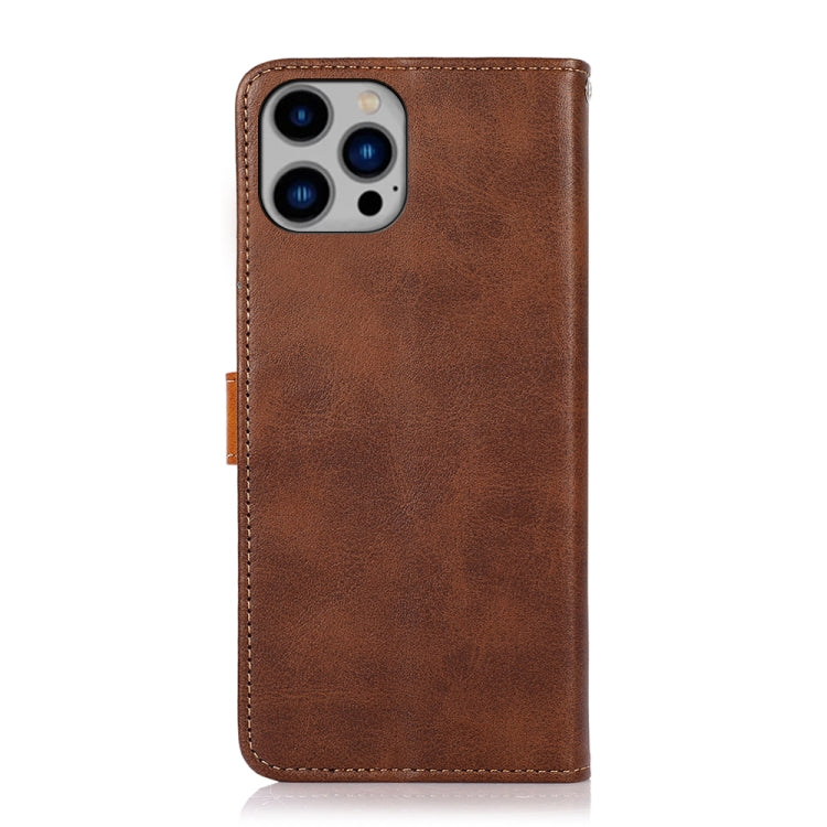 For iPhone 15 Pro Max KHAZNEH Dual-color Cowhide Texture Flip Leather Phone Case (Brown)